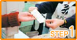 お買物をした後、精算時にレジで黄色いレシートを受け取ります。